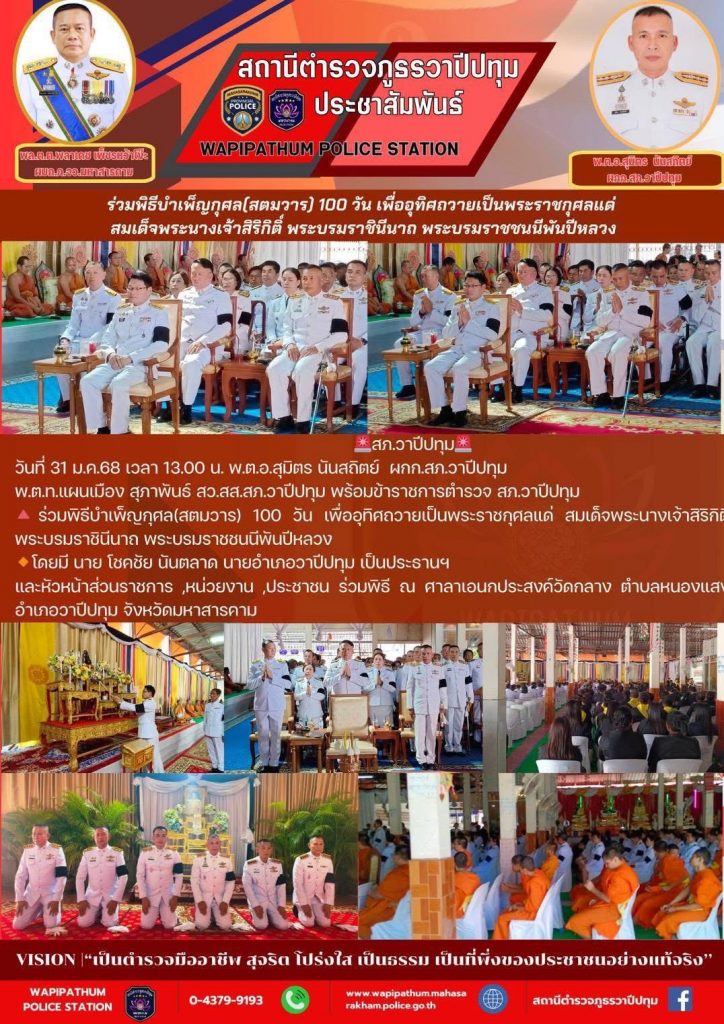 ร่วมพิธีบำเพ็ญกุศล(สตมวาร) 100 วัน เพื่ออุทิศถวายเป็นพระราชกุศลแด่ สมเด็จพระนางเจ้าสิริกิติ์ พระบรมราชินีนาถ พระบรมราชชนนีพันปีหลวง