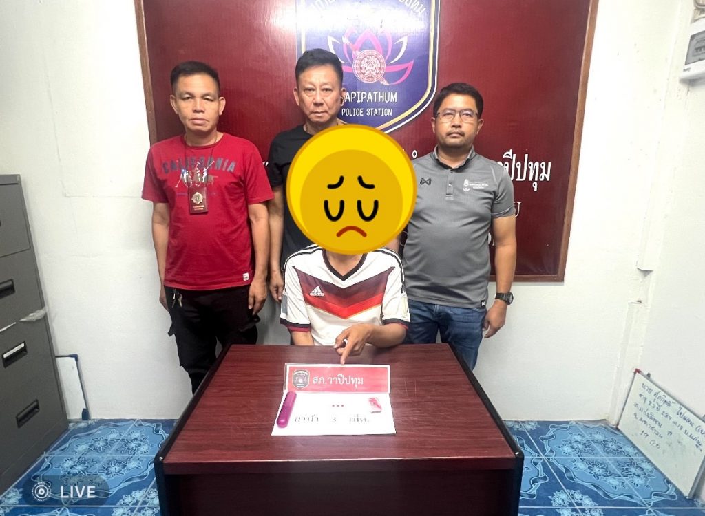 โดยการอำนวยการของ พ.ต.อ.ดร.พัทฐกร ศาสนะสุพินธ์ ผกก.สภ.วาปีปทุม, มอบหมายให้ พ.ต.ท.พิเชฐ สีอองโคตร สว.สส.ฯพร้อมด้วยชุดสืบสวนฯ ได้ร่วมทำการจับกุมผู้ต้องหา 1 ราย 1 คน คือ