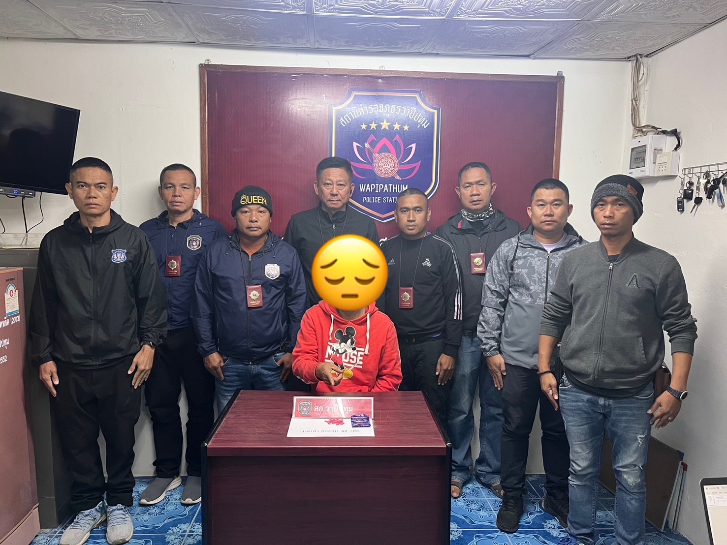 โดยการอำนวยการของ พ.ต.อ.ดร.พัทฐกร ศาสนะสุพินธ์ ผกก.สภ.วาปีปทุม มอบหมายและสั่งการให้ พ.ต.ท.พิเชฐ สีอองโคตร สว.สส. ฯ พร้อมด้วยชุดสืบสวน สภ.วาปีปทุม ได้ร่วมทำการจับกุมตัว ผู้ต้องหา 1 ราย 1 คน คือ