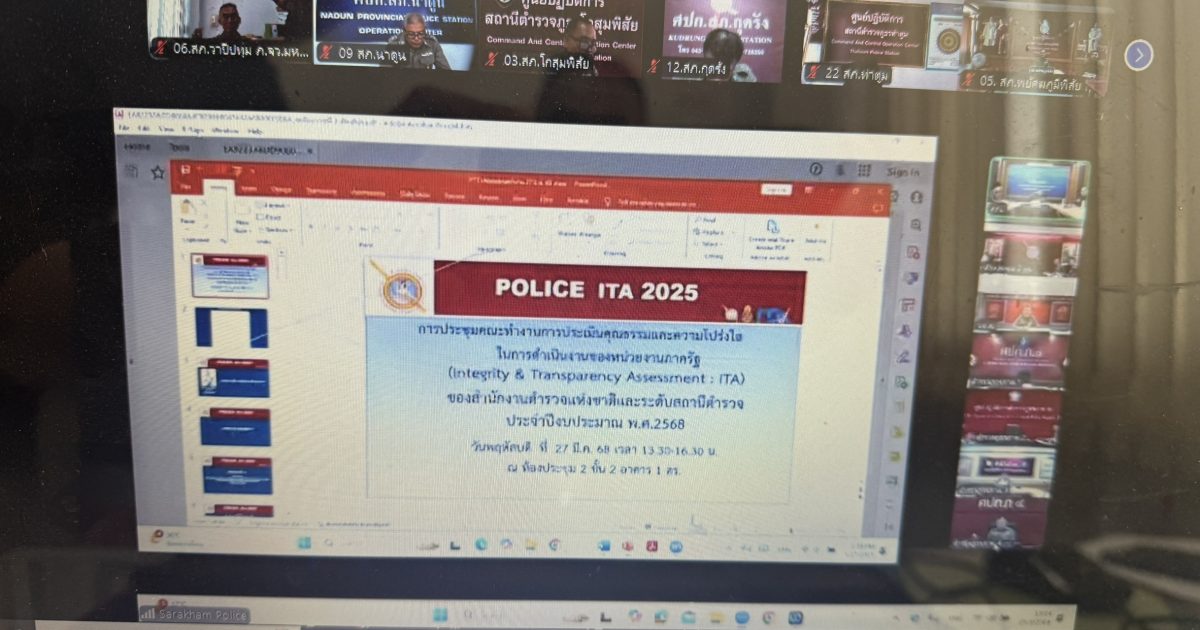 ประชุมทางไกลผ่านจอภาพ (Video Conference) ระบบ Zoom Meeting ติดตามผลการประเมินคุณธรรมและความโปร่งใสในการดำเนินงานของหน่วยงานภาครัฐ (ITA) ของ ตร.