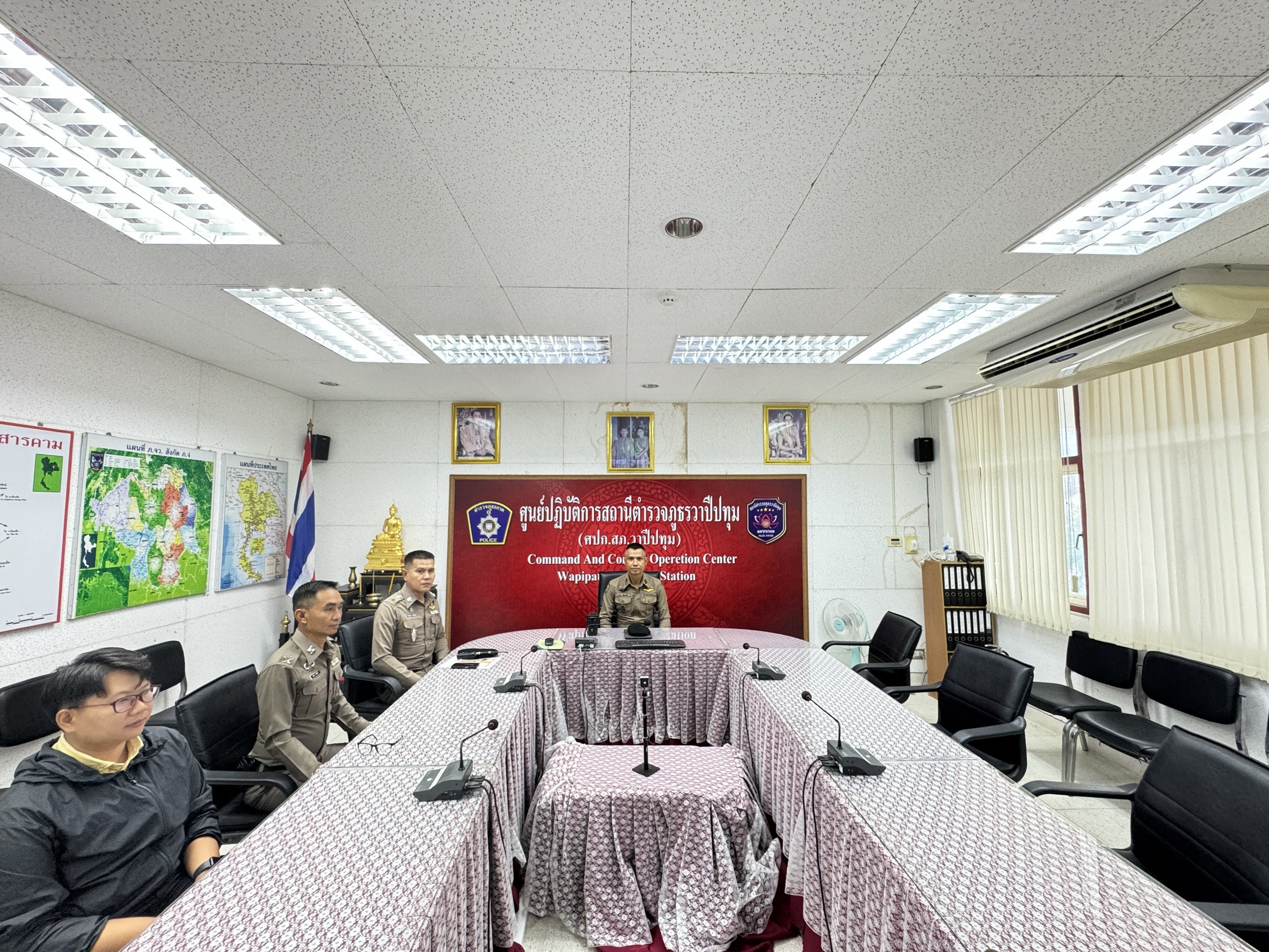 🔸จากนั้นเมื่อเสร็จสิ้นการปล่อยแถว ได้ร่วมประชุมเปิดศูนย์ ศปก. และการติดตามการถ่ายทอดสดการปิดล้อมตรวจค้น ณ ห้อง ศปก.สภ.วาปีปทุม