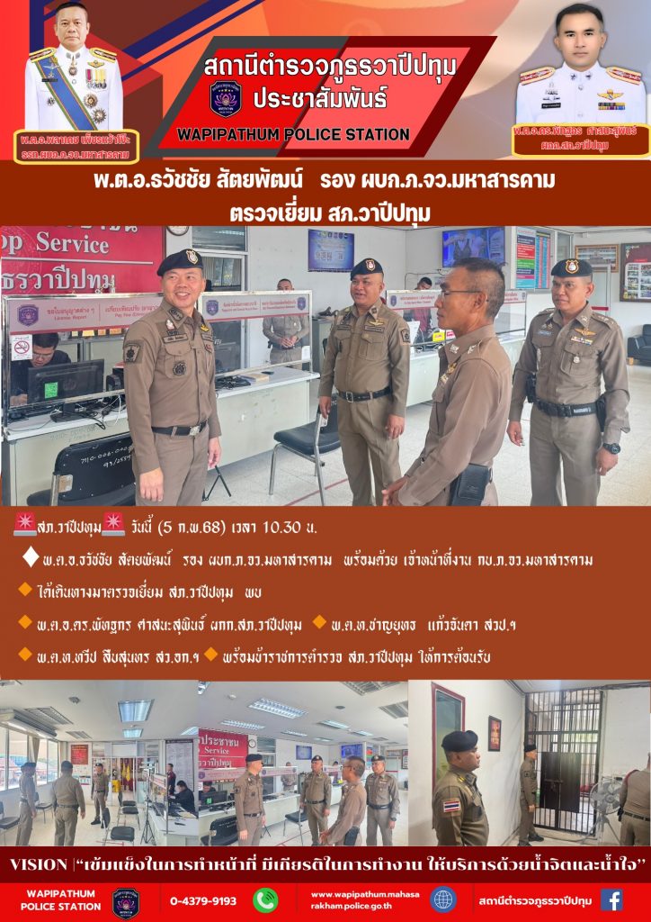 พ.ต.อ.ธวัชชัย สัตยพัฒน์ รอง ผบก.ภ.จว.มหาสารคาม เดินทางมาตรวจเยี่ยม สภ.วาปีปทุม