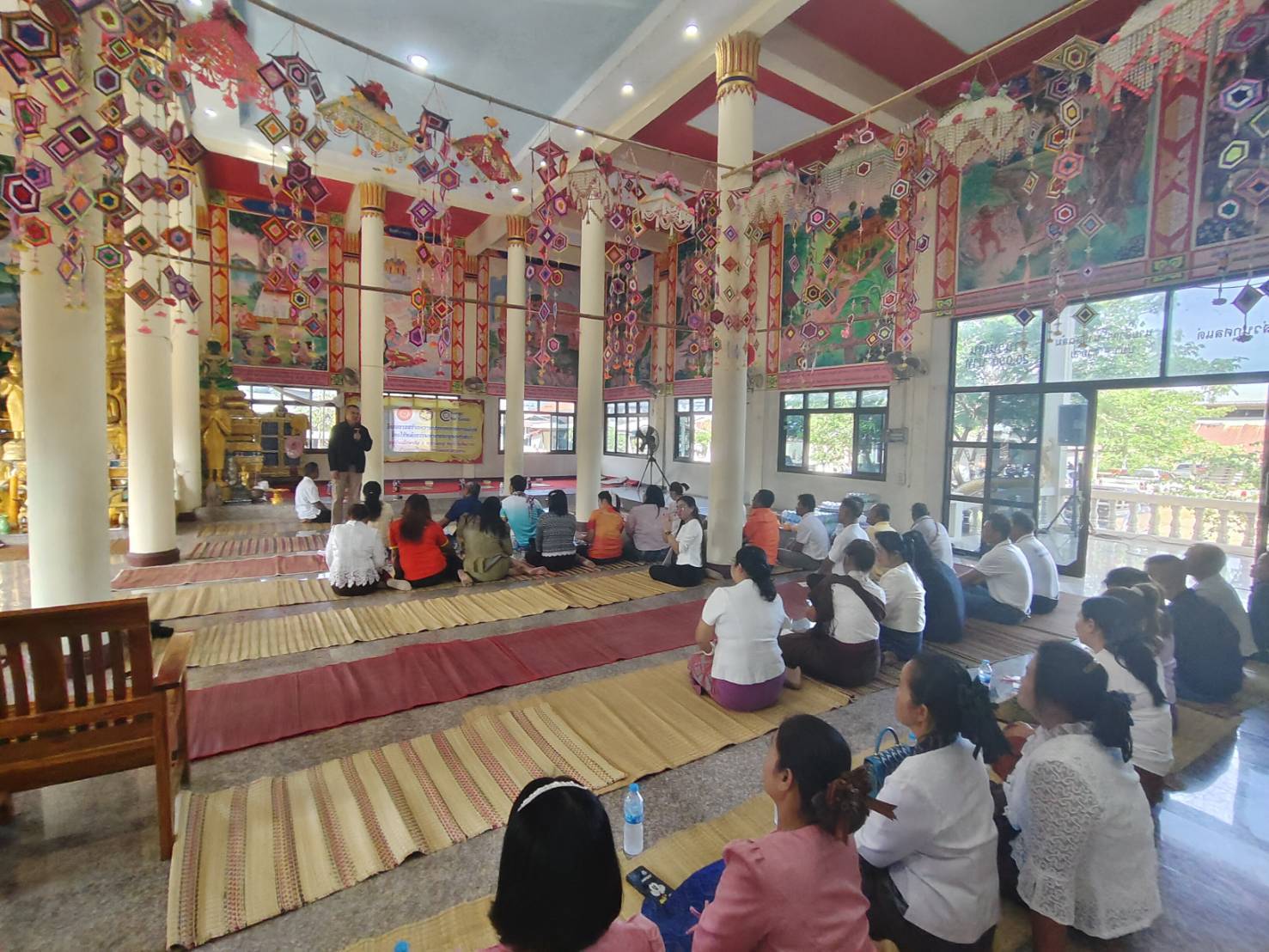 ร่วมกิจกรรมตามโครงการ หมู่บ้านรักษาศีล 5 28 พฤศจิกายน 2567 โดย Admin / ประจำเดือน พฤศจิกายน ป. วันนี้(28 พ.ย.2567)เวลา 10.00 น. พ.ต.อ.ดร.พัทฐกร ศาสนะสุพินธ์ ผกก.สภ.วาปีปทุม มอบหมายให้ พ.ต.ต.ปิติพงษ์ ขาวภา สวป.(ชส)ฯ พร้อมสายตรวจตำรวจตำบล เข้าร่วมกิจกรรมตามโครงการ สร้างความปรองดองสมานฉันท์ โดยใช้หลักธรรมทางพระพุทธศนา “หมู่บ้านรักษาศีล5 ขยายผลสู่หมู่บ้านศีลธรรม” ประจำเดือนพฤศจิกายน 2567 ของอำเภอวาปีปทุม ณ วัดบ้านหนองเดิ่น บ้านหนองเดิ่น ม.16 ต.หนองแสง อ.วาปีปทุม จ.มหาสารคาม โดย มีนายปรีชาพงษ์ ทองมี นายอำเภอวาปีปทุม เป็นประธาน คลิกรูปภาพ