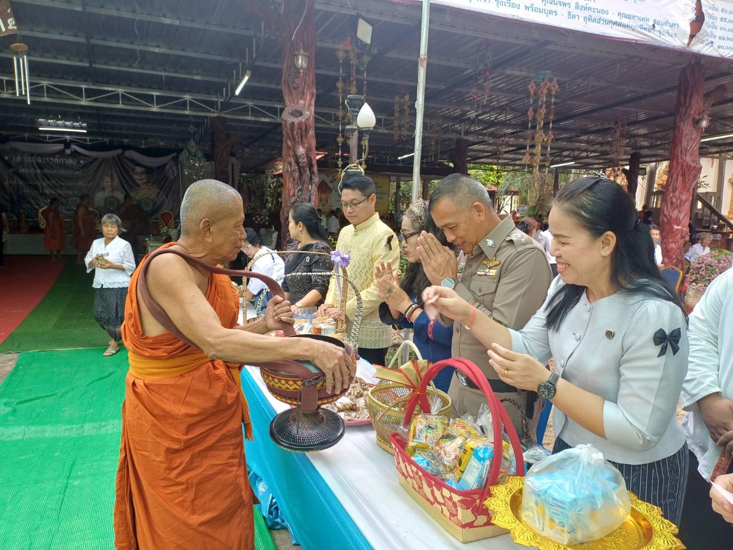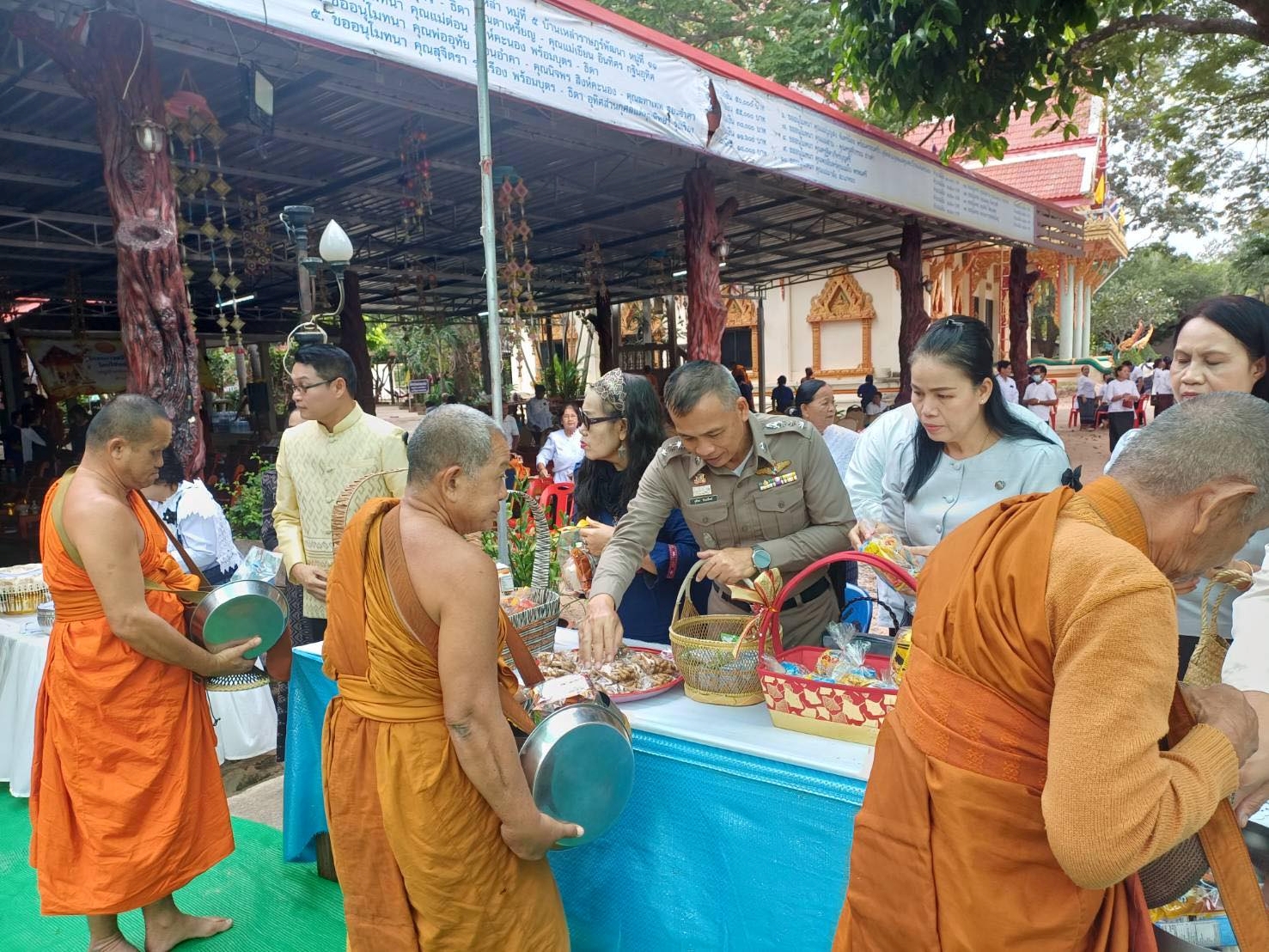 โดยมีหัวหน้าส่วนราชการ นายกองค์การบริหารส่วนตำบลประชาพัฒนา ผู้นำท้องถิ่น พี่น้องประชาชนในพื้นที่ ร่วมทำบุญตักบาตรข้าวสารอาหารแห้งในครั้งนี้