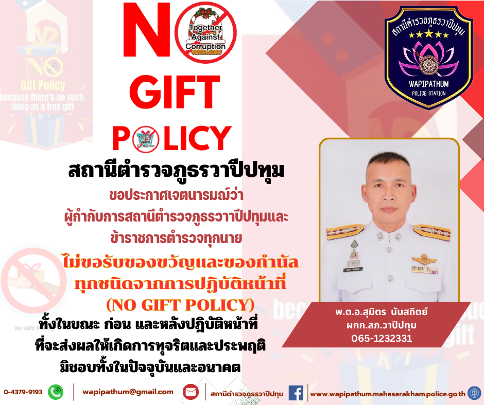อบรมข้าราชการตำรวจเพื่อไม่ให้รับของขวัญและของกำนัลทุกชนิดจากการปฏิบัติหน้าที่ (No Gift Policy)