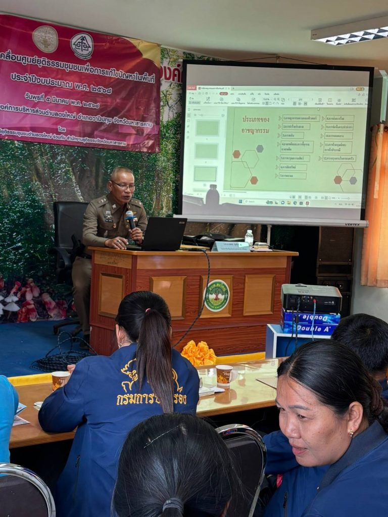 เป็นวิทยากร ตามโครงการขับเคลื่อนศูนย์ยุติธรรมชุมชนเพื่อแก้ไขปัญหาในพื้นที่