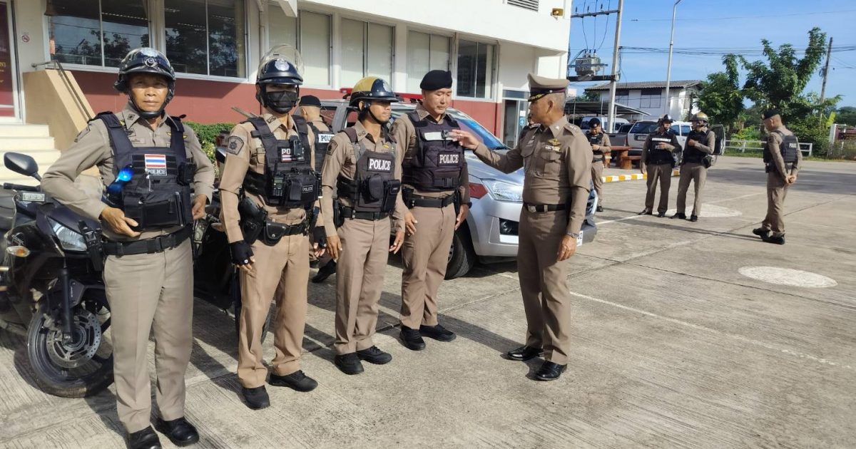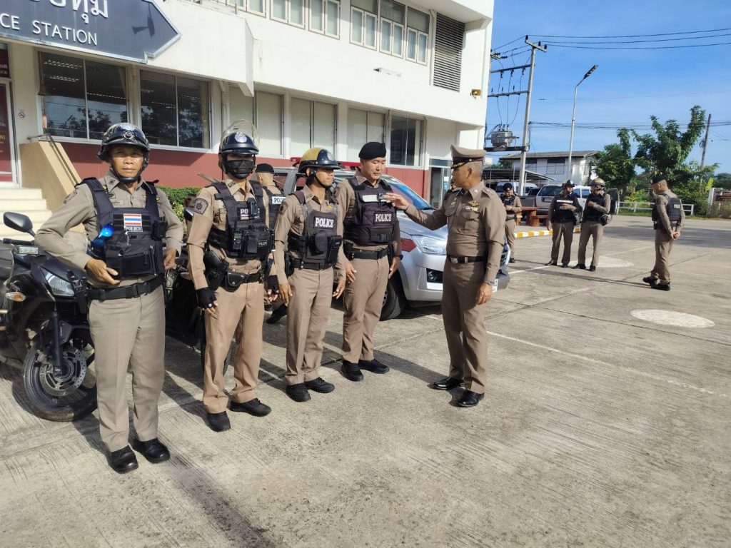 พ.ต.ท.รังสรรค์ ประยงค์วีระกุล สวป.ฯ ร.ต.อ.พัฒนคม คงเกิด รอง สวป.ฯ เรียกแถวสายตรวจรถยนต์-จยย. ผลัดเข้า-ออก เพื่อ