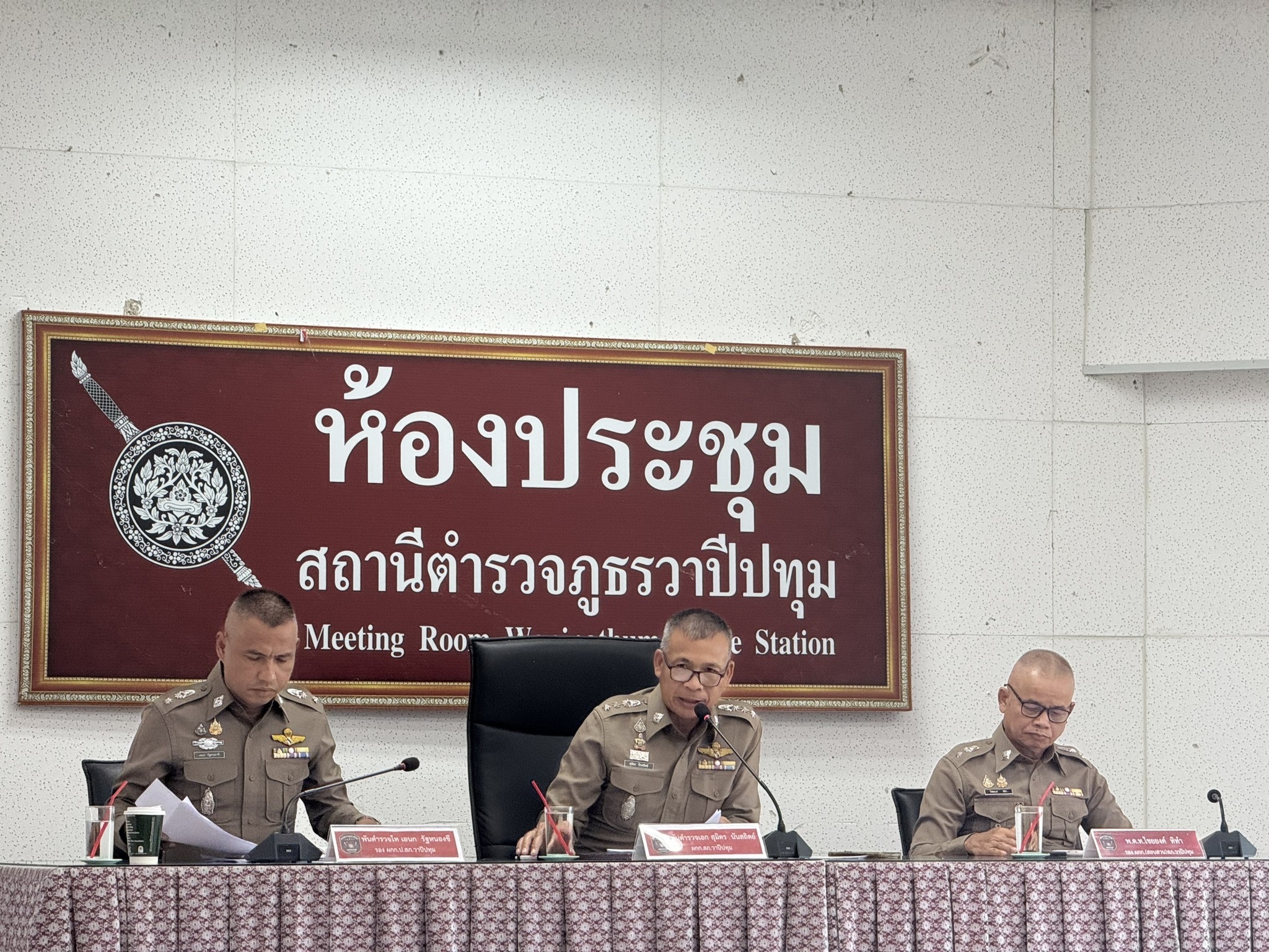 วันที่ ๑๔ พฤศจิกายน ๒๕๖๘ เวลา ๐๙.๐๐ น. พ.ต.อ.สุมิตร นันสถิตย์ ผกก.สภ.วาปีปทุม,พ.ต.ท.เอนก รัฐหนองขี